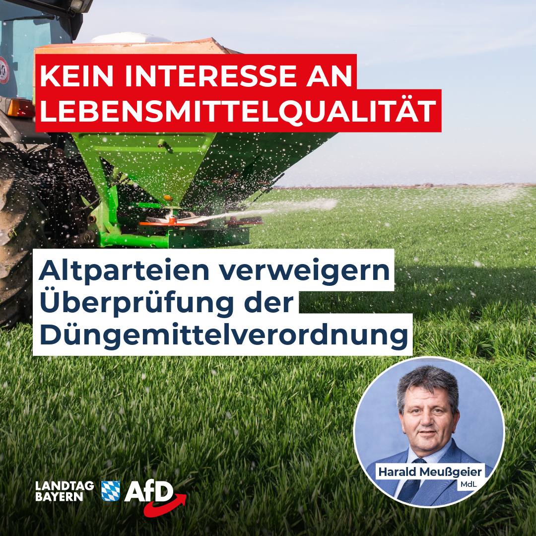 Die Verschärfungen der Düngeverordnung und die damit einhergehende Ausweisung von sog. Roten Gebieten stellen die Landwirte in Bayern vor enorme Herausforderungen. Eine umfassende Evaluation der Düngeverordnung in Bayern liegt bislang nicht vor, trotz der großen Auswirkungen. Die AfD-Fraktion im Bayerischen Landtag hat einen Antrag eingebracht, in dem die Staatsregierung aufgefordert wird, die Auswirkungen der Düngeverordnung auf die den Landwirten entstandenen [...]