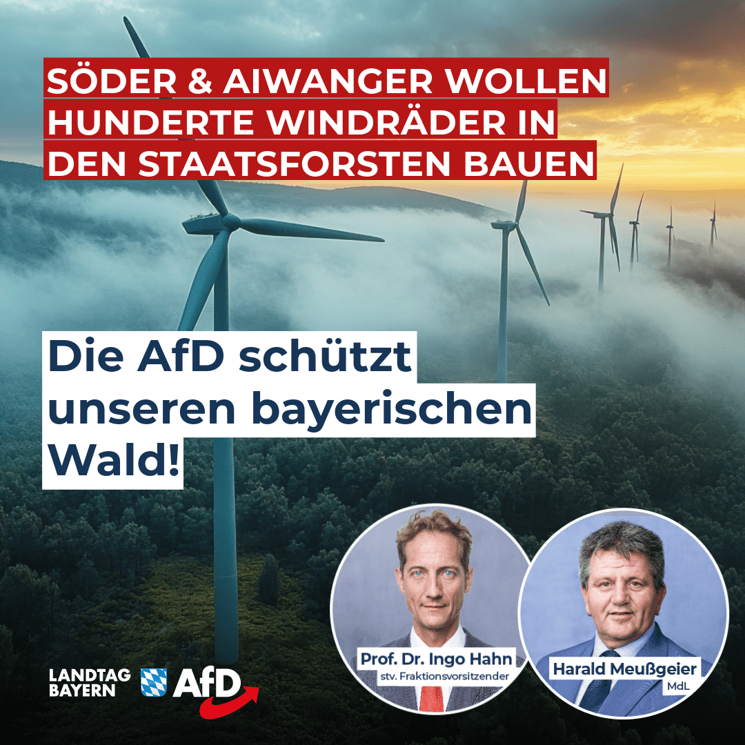 Ingo Hahn / Harald Meußgeier: Söder und Aiwanger wollen Hunderte Windräder in den Staatsforsten bauen – Die AfD schützt unseren bayerischen Wald!
