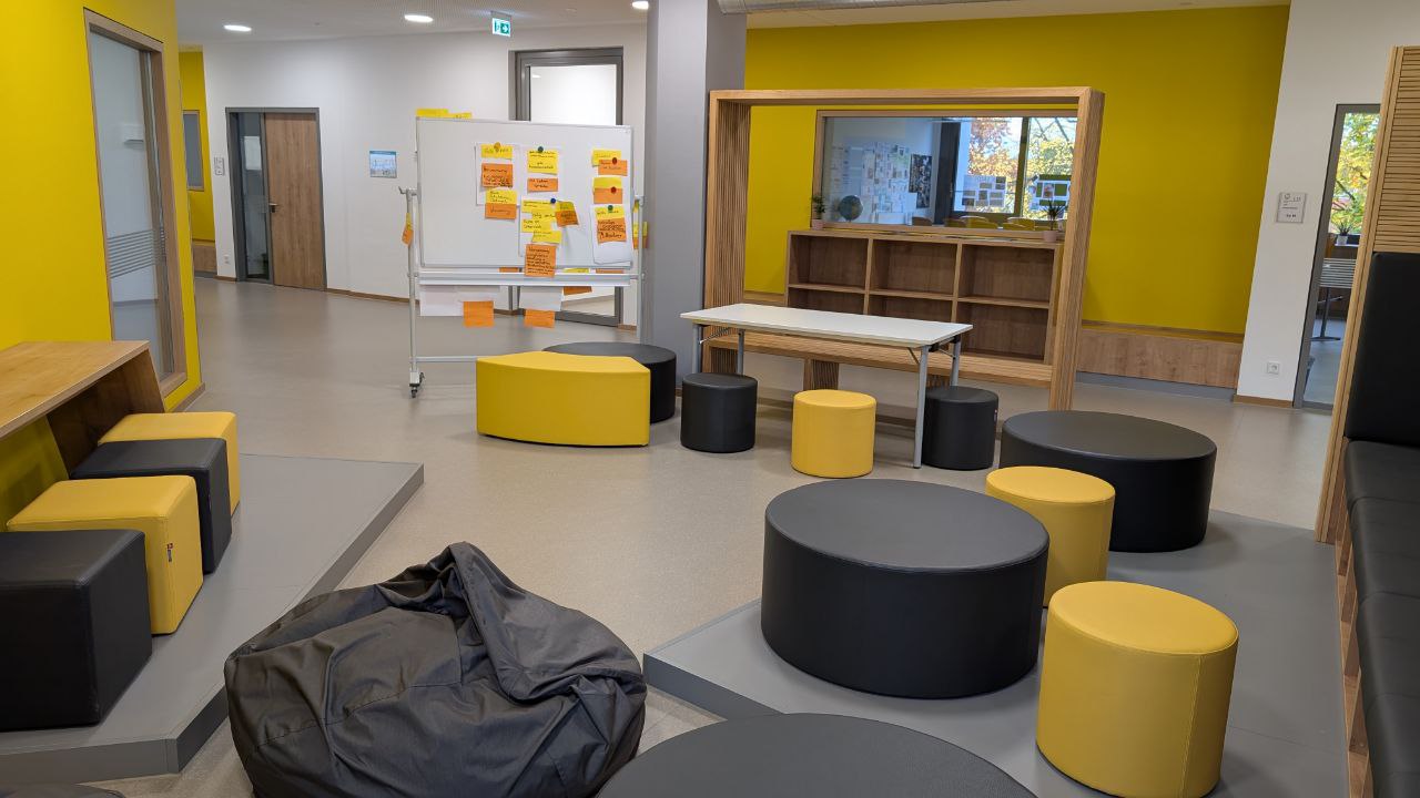 Es war mir eine besondere Freude und Ehre, bei der Einweihungsfeier dabei sein zu können. Gerne hätte ich auch ein Grußwort gesprochen, die Rednerliste wurde dann aber eingeschränkt, weil dies zu viele tun wollten. Vor fast 50 Jahren war ich einst selbst Schüler an dieser Schule. Im Schuljahr 1977/78 war ich in einer der Klassen, die 9c, die damals in das neu errichtete Schulzentrum zogen. Zuvor waren wir in der Lucas-Cranach-Schule. Die Gottfried-Neukam-Schule wurde von Grund auf saniert und umgebaut, die Ausstattung ist hochwertig. Es ist beeindruckend, wie die Schule mit hellen, lichtdurchfluteten Räumlichkeiten neu gestaltet wurde. Für die Schüler wurden in der Aula verschiedene Lern- und Aufenthaltsbereiche geschaffen.