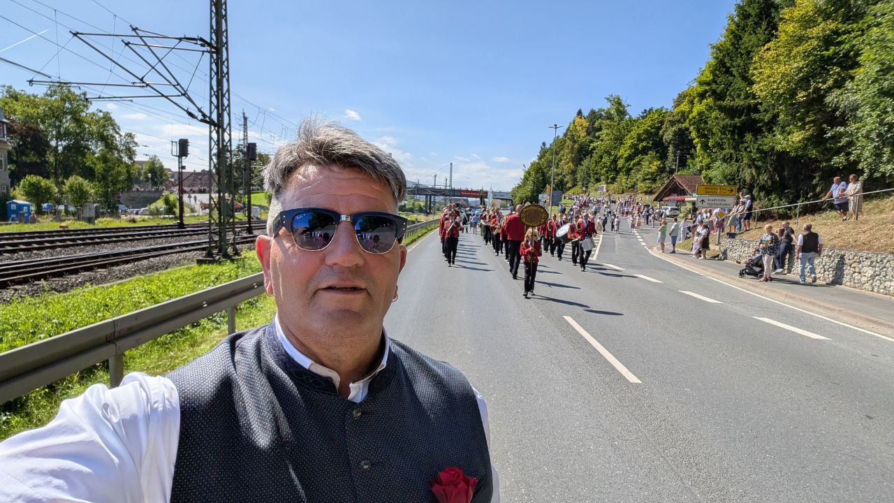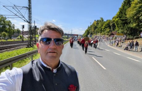 Das 435. Schützenfest, die fünfte Jahreszeit in Kronach, hat begonnen. Bei herrlichem Wetter, fand der Schützenauszug der Kronacher Schützengesellschaft e.V. statt. Ich war bei diesem Traditionsumzug mit dabei und alle waren gut gelaunt an diesem Morgen. Der Auszug startete um 11 Uhr vom Rathaus zum Schützenplatz. Zahlreiche Menschen säumten den Wegesrand und winkten uns fröhlich zu.